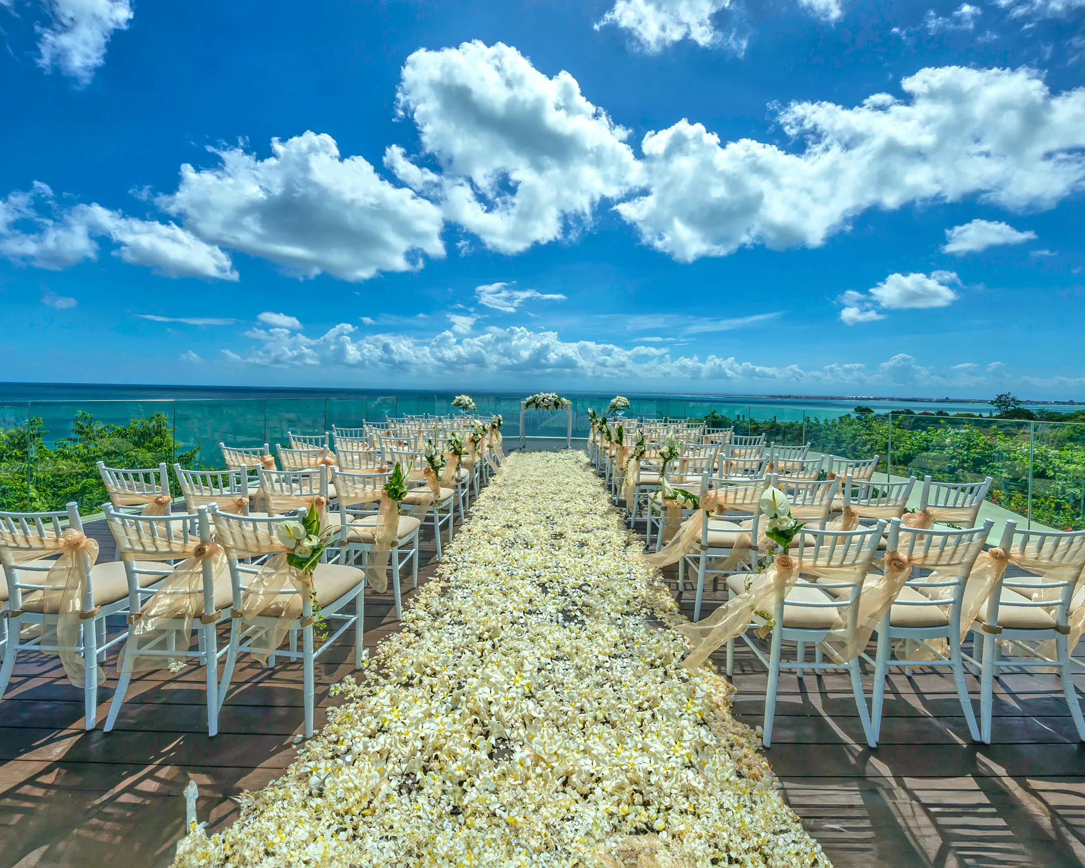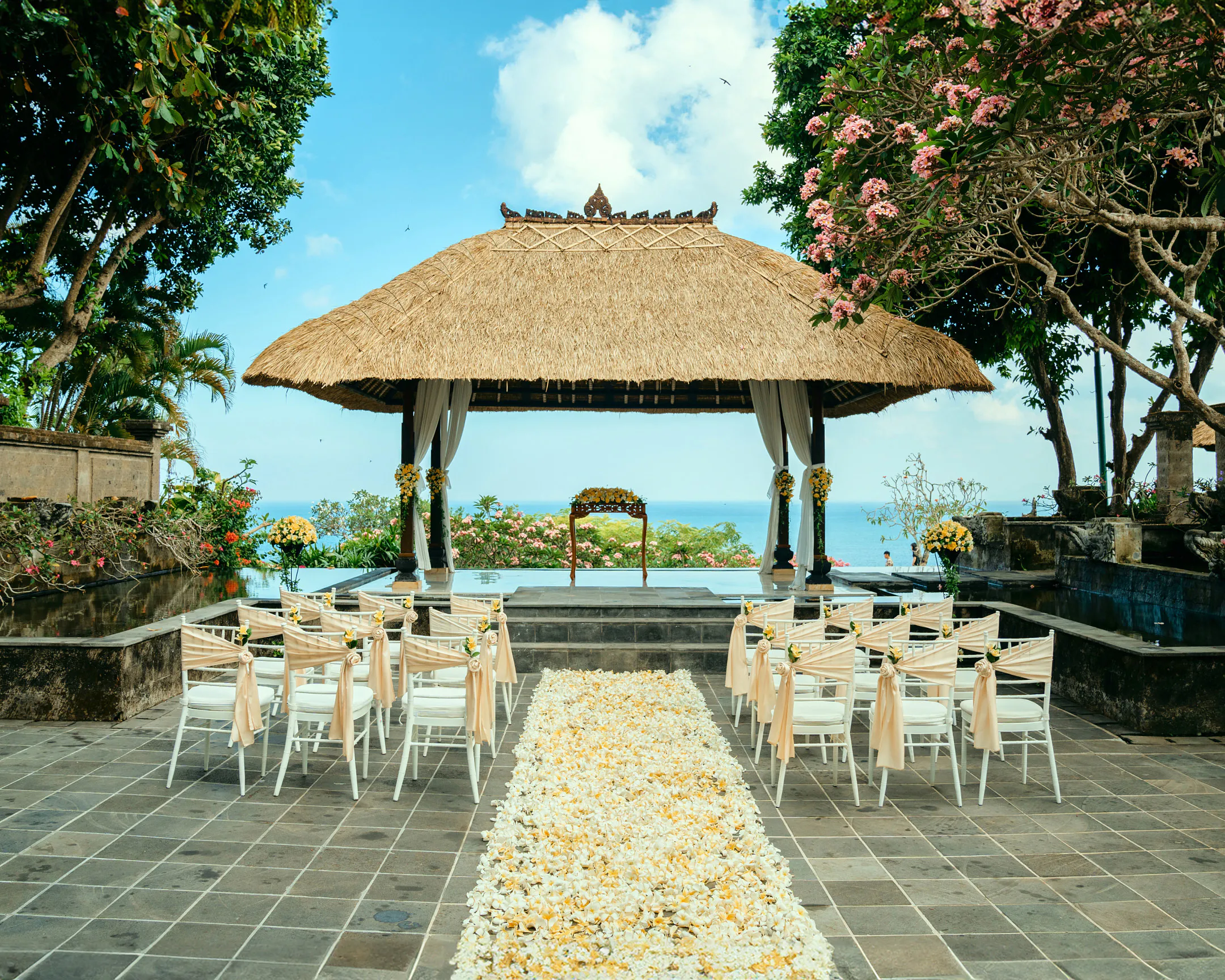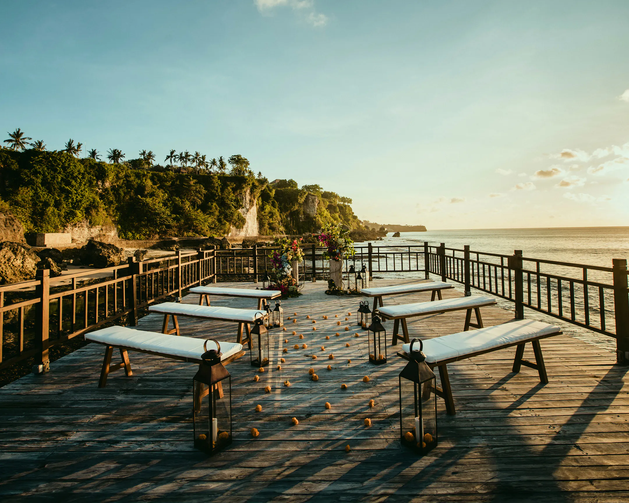 SKY is a unique and exciting location for wedding receptions in Bali, seemingly floating 35 meters above the Indian Ocean with endless views melting into the horizon. Enjoying maximum privacy and 180-degree cliff-top Bali ocean views and sunsets, SKY is part of a spectacular 7,500 square meter multi-purpose Bali event venue located above AYANA’s secluded Kubu Beach.